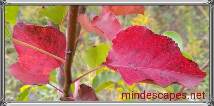 Bright red leaves in a sea of green. Posted for Cee’s Flower of the Day Challenge