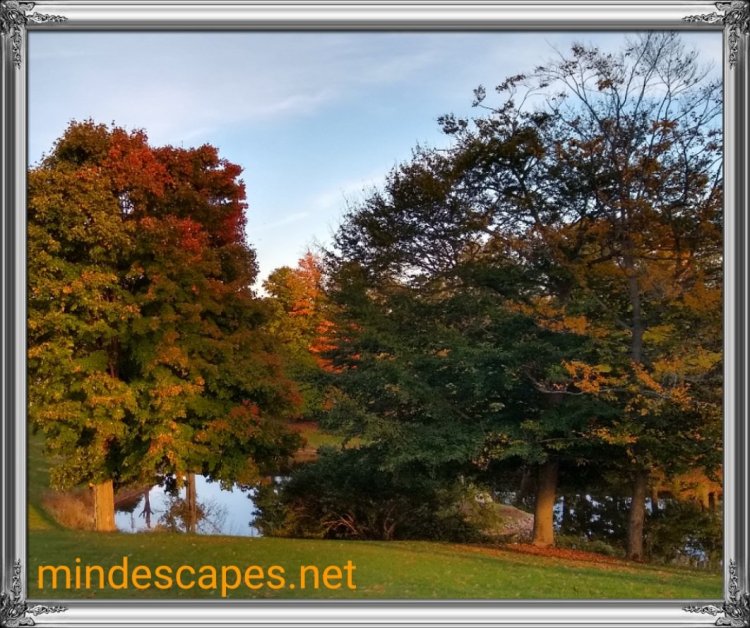 This picture was taken just before sunset about a week ago before the change of the leaves really set in. This week, those trees are almost completely changed and have fewer leaves.