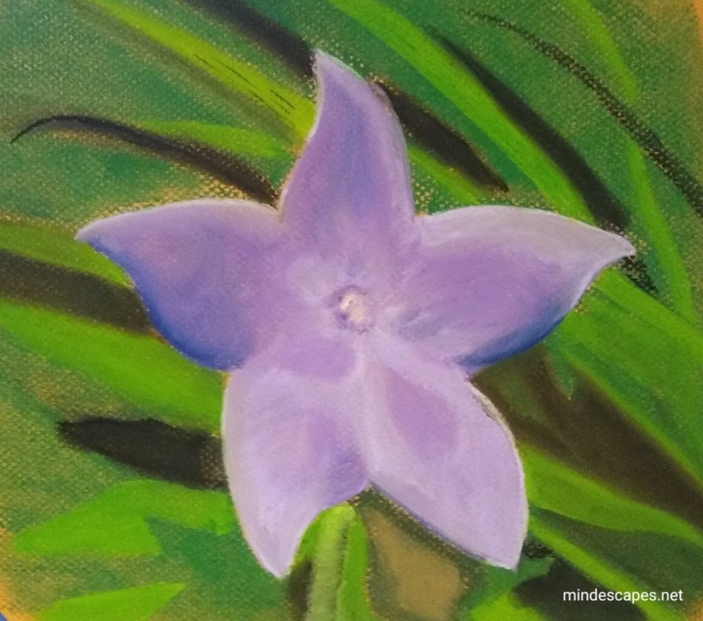 Ultimately, most of the colors are good, the background is a bit more crisp and varied. The portion of the flower in the light is good but the veining tended a bit heavy. It could be a poor color choice…too much red. Speaking of color choices, I didn’t have a proper shade in my pastel kit to pull out the shadows so I added a bit of dark gray into the mix. A bit too much dark gray, and with blending to even it out kind of turned the shadow region a bit muddy with a lack of color variation. I think it resembles the shadows better than the flower in purple, but came at a loss of color depth so I am not as pleased.