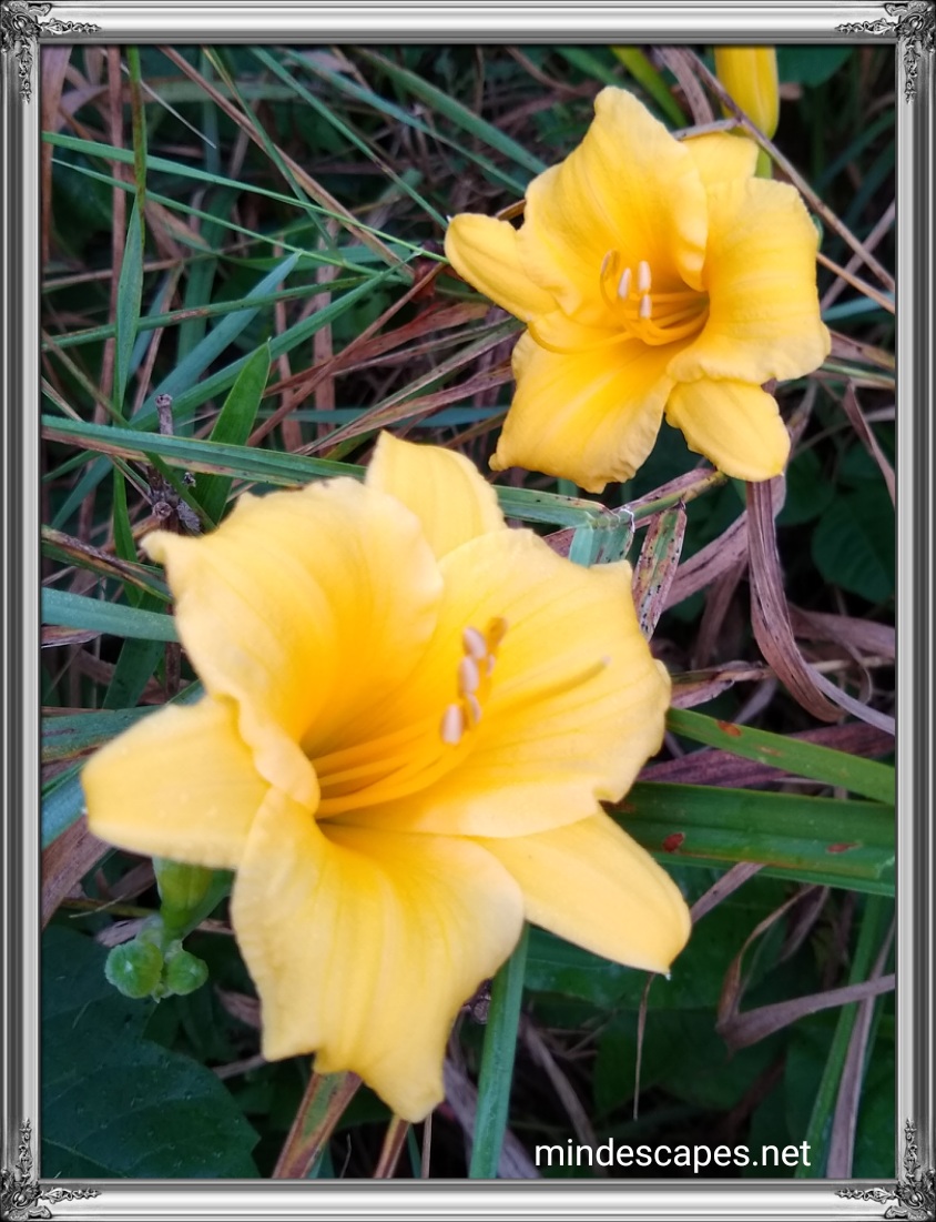Yellow Lillies, petals of gold, Float in this sea of grass… Warming tones with hues so bold, Poised here with lots of class… Fragrances sweet, breathe it in deep, Relaxing along the way… Often repeat, joy you will keep, To aid you throughout your day! © 2018 – James Sponseller – mindescapes.net